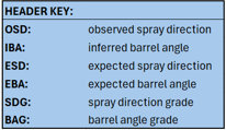 As a result, barrel orientation must be reconstructed from the relationship between pitch location and spray direction rather than obtained through direct sensor measurement. This reliance on inference is a consequence of current reporting priorities, not a deficiency in available measurement technology.