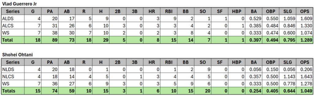 To validate the explanatory power of CGD, this study isolates high-leverage performance data from the 2025 Major League Baseball postseason. The dataset encompasses all plate appearances from the American and National League Division Series, Championship Series, and World Series. The analysis focuses specifically on two distinct hitter profiles: Shohei Ohtani and Vladimir Guerrero Jr.